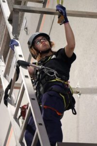 Laura es de Córdoba y ha estudiado con nosotros en la primera promoción. En la foto aparece haciendo prácticas de trabajos en altura durante el primer curso.