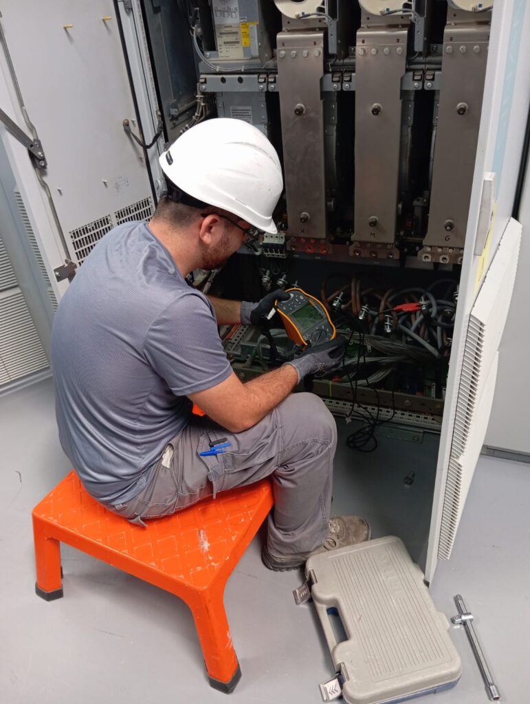 José Martínez es de Lora del Río, Sevilla. Está “megando” la bomba de HTF, que quiere decir que está comprobando el aislamiento de los conductores que alimentan la bomba del aceite térmico. Está en la planta termosolar La africana